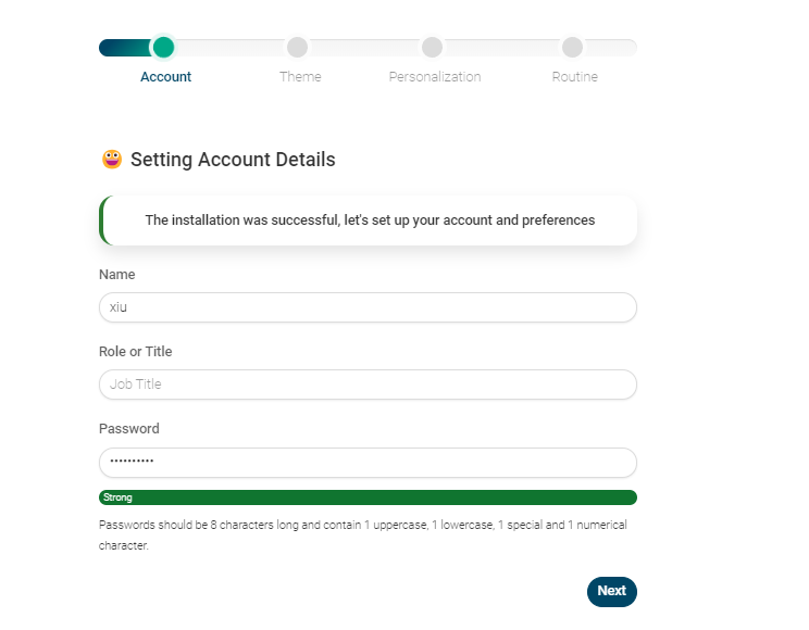 在浏览器中打开我们部署的地址来访问项目,首次需要先设置管理员