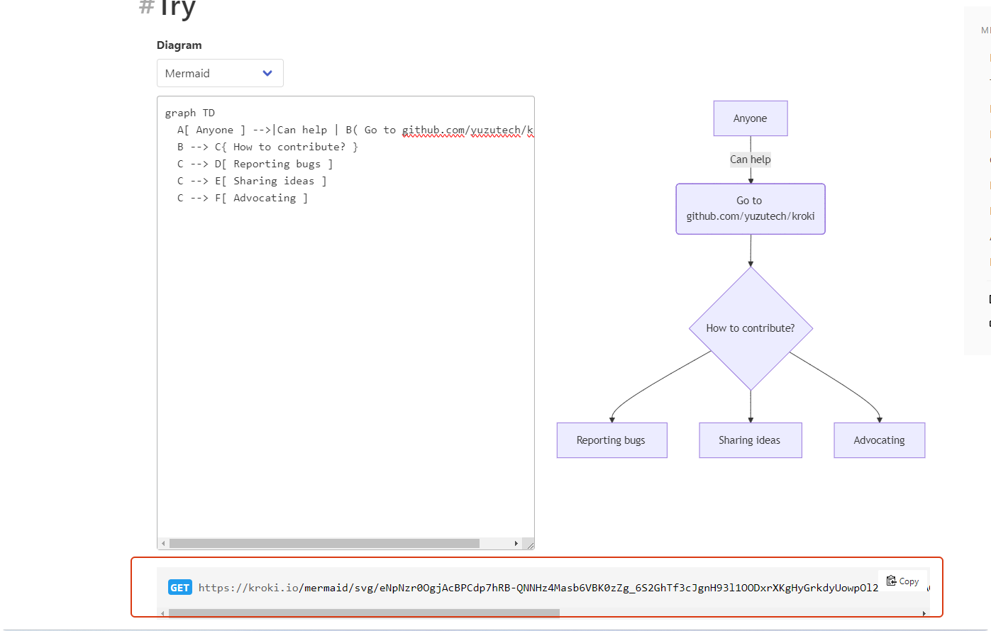 Kroki 暴露的是一个简单的 HTTP 接口,你可以用 GET 或 POST 来调用。